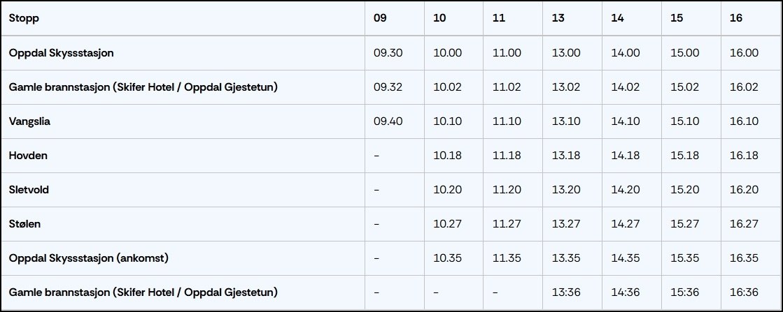 There is now a bus service from the city center to the facilities. The bus is free and departs at the following times as long as the ski center is open: